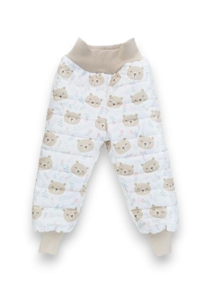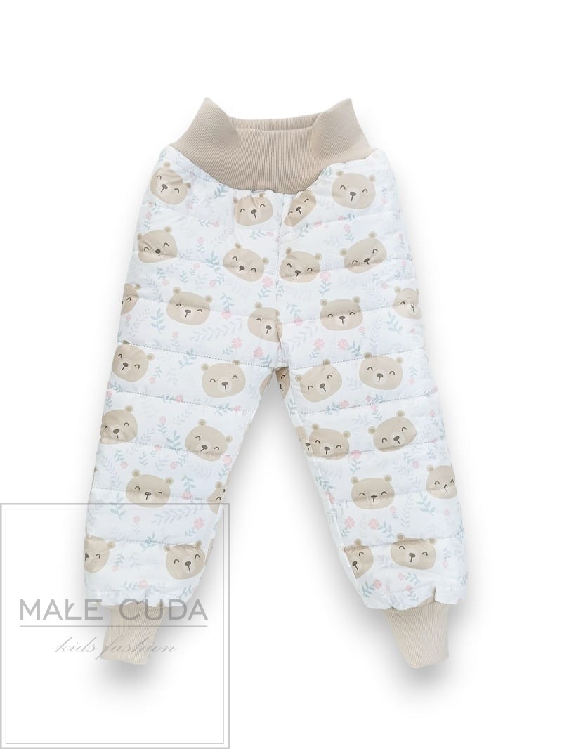 Zimowe pikowane spodnie na podszewce wykończone w pasie oraz w nogawkach bawełnianym ściągaczem.